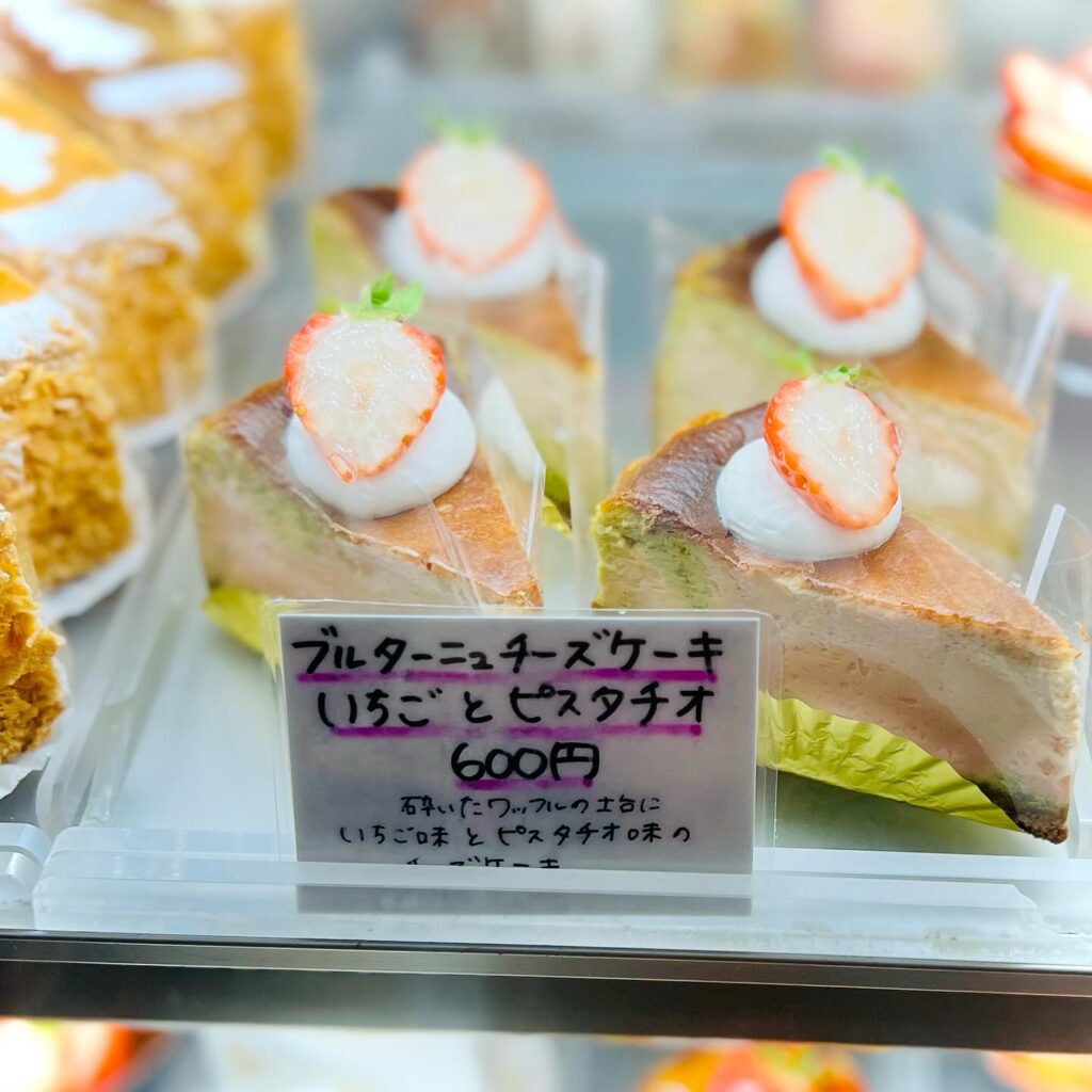 クリスマスカラーを意識したケーキとなっております🎄ホールでノーマルのブルターニュチーズケーキもお出ししております✨こちらもオススメです‼️
